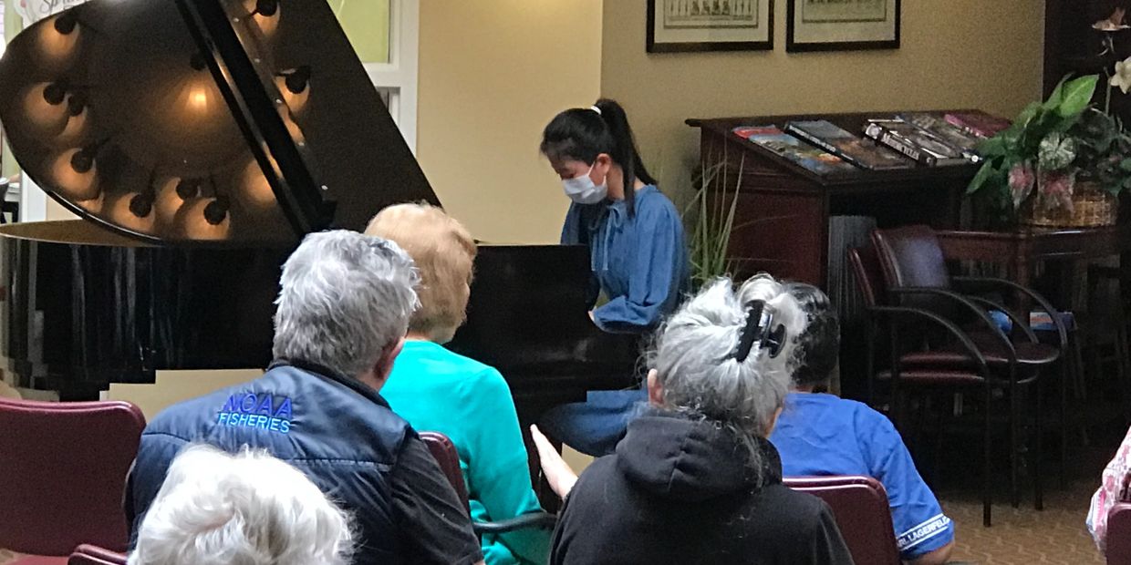 Each visit saw her playing music alongside young musicians, offering a sense of comfort and normalcy to the seniors during an isolating time. With around 50 or more senior residents at each center, Amber and her fellow musicians shared live performances that not only uplifted spirits but also provided an important outlet for emotional expression and connection, bringing joy to more than 250 seniors.