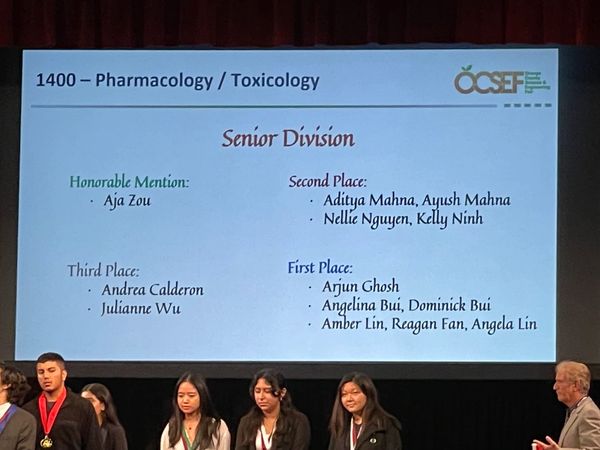 Awarded First Place at the Orange County Science and Engineering Fair. Qualified to compete at the California Science and Engineering Fair (CSEF).